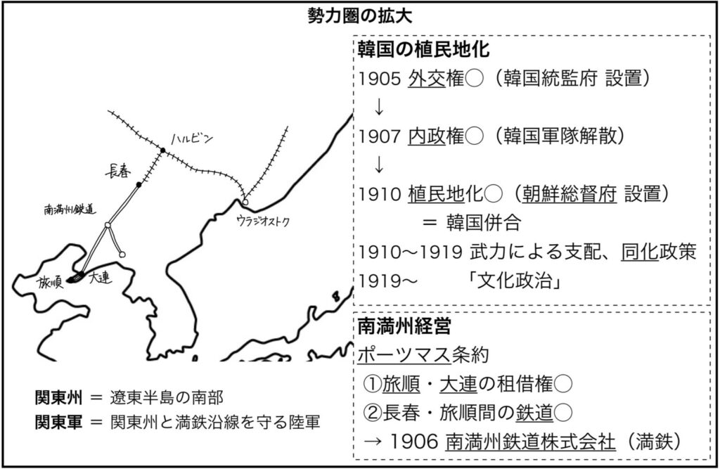 =韓国への支配を推し進め、最終的に日本に併合した
