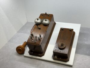 - ハンドルを回すと、交換手のところでベルが鳴り、呼び出されます。