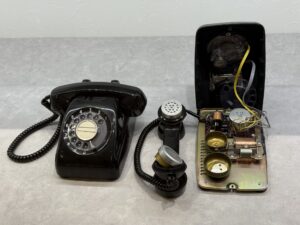 昔の電話機には、小型の手回し式発電機(マグネット発電機)が内蔵されており、ハンドルを回すことで交流電流(AC)を発生させていました。