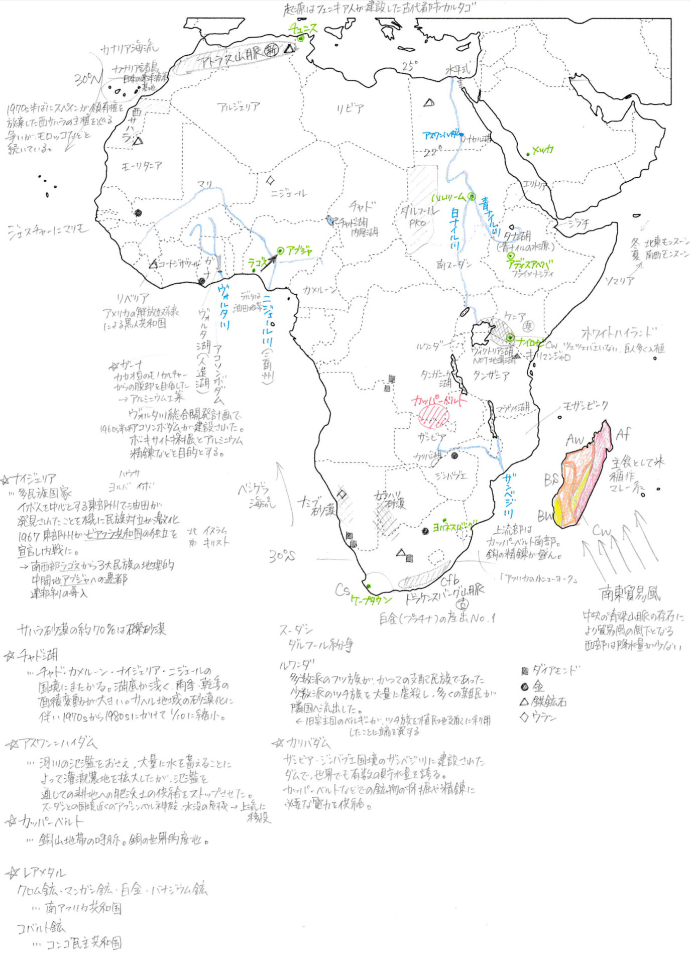まあ世界全体の略地図が必要な時ってどんな時だよ、って感じだけど・・・(←実際、必要になる場面はほぼない。各地域の略地図さえ書けるようになっていればOK)
