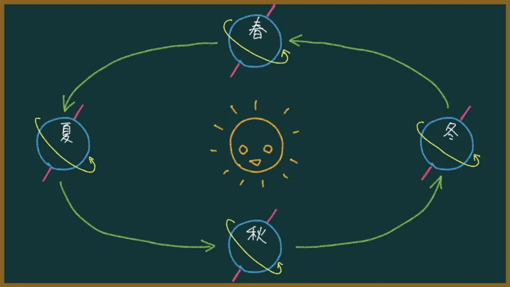 北半球にある日本での四季の移り変わりはこんな感じ↓