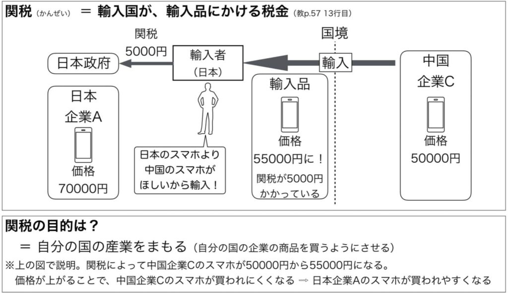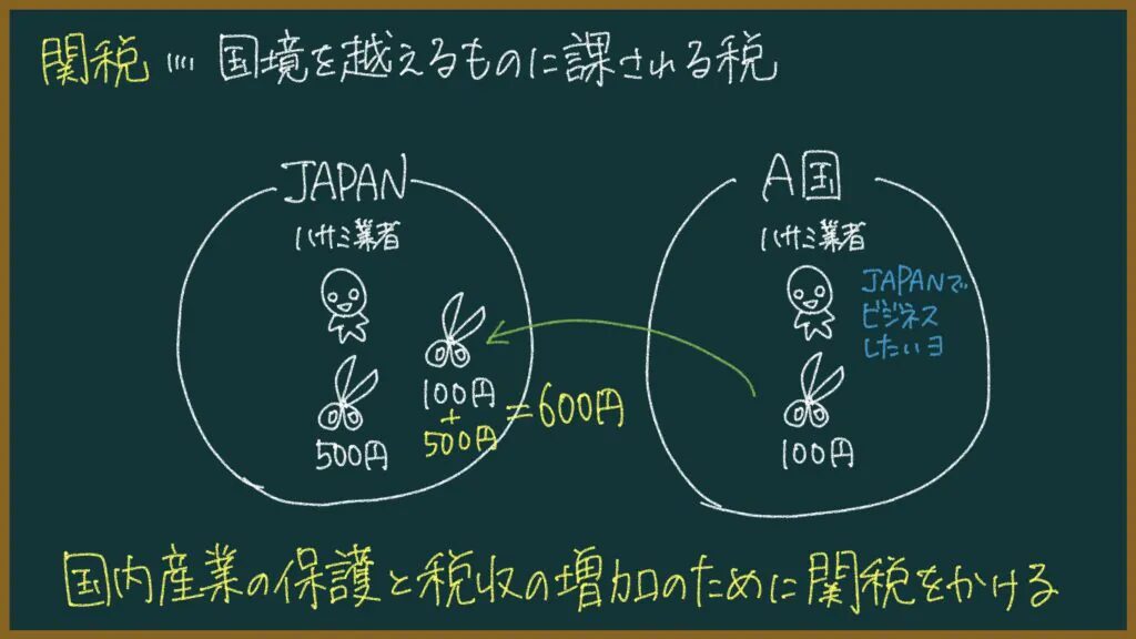 そうならないように、日本政府は「国境を越えるもの」(=ハサミ)に関税をかけます。