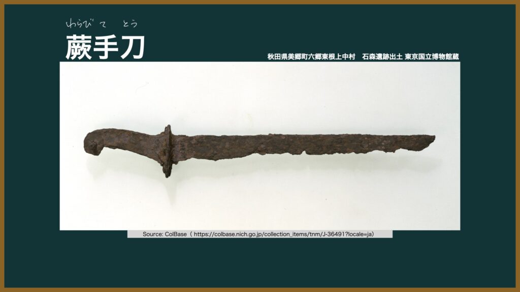 高度な武具は、戦いを通じて蝦夷側にも流出していたはず。実際、蝦夷側は和人の鉄製武器の技術を取り入れつつ、彼ら特有の「蕨手刀(わらびてとう)」を発展させていた。