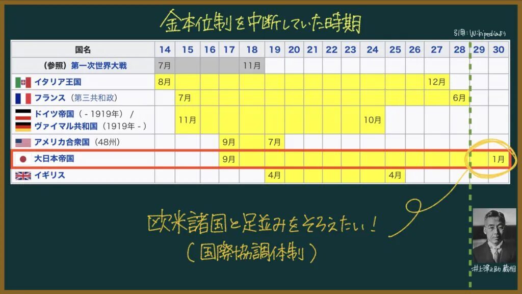 「他の主要国と同様に、日本も金本位制に復帰する!」というのが井上準之助が目指していたことでした。
