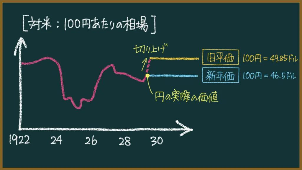 ※旧平価=1897年に日本が初めて金本位制に移行する際に、貨幣法という法律で定められた水準
