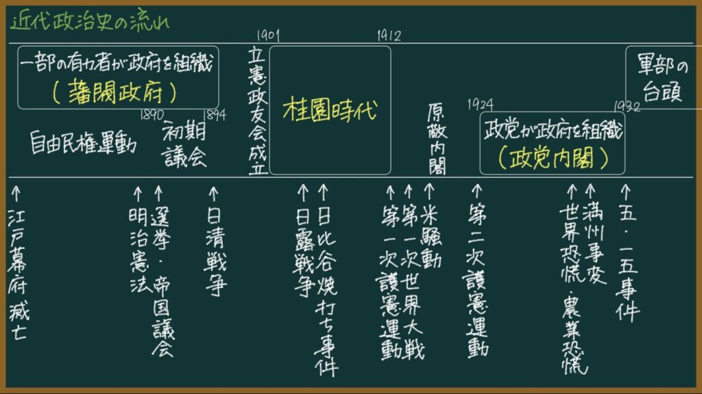 こんな感じで、「自分たちだけで学年の未来を決めようとする教員と、教員に不満を抱く生徒の間でバトルが起きたよ。じゃあ、どんな駆け引きが行われるだろう?」ってイメージすると、自由民権運動と士族反乱の部分の歴史はわかりやすくなると思います!