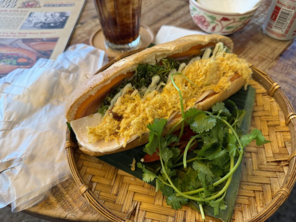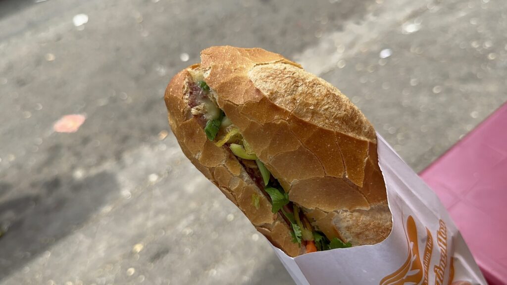 | バインミー | フランスパンに肉や野菜を挟んだサンドイッチ。屋台で手軽に買える。 | 植民地時代のフランス文化とベトナムの食材が融合。 |