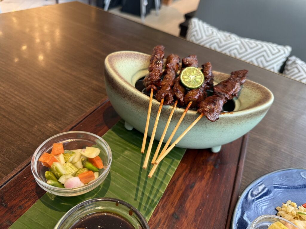 | サテ | 甘辛いソースをかけて食べる串焼き。屋台でも人気。 | マレー系文化由来。高温多湿な気候で食べ物が腐りやすいので、よく火を通しスパイスを加えたソースをつける。 |