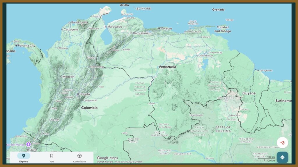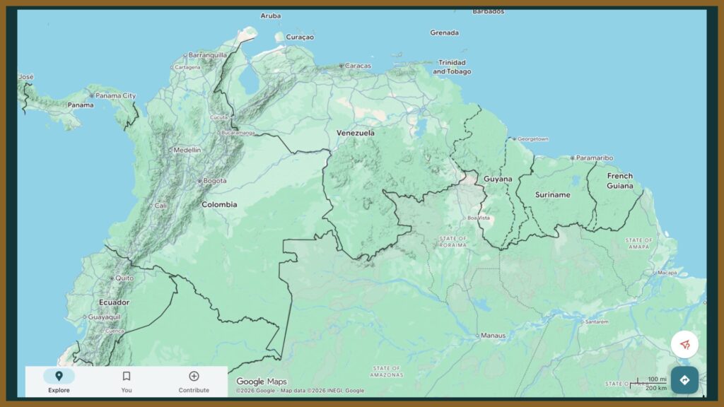 まず北部。カリブ海をぐるっと囲むようにプレート境界が位置するため、カリブ海沿岸は険しい山脈が形成されている。ガイアナ、スリナム、フランス領ギアナのあたりにはギアナ高地が分布し、内陸部との交通が制限されやすい。