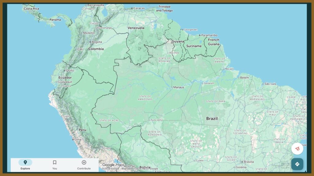赤道付近には世界最大級のアマゾン熱帯雨林が広がり、道路建設や都市形成が極めて困難である。