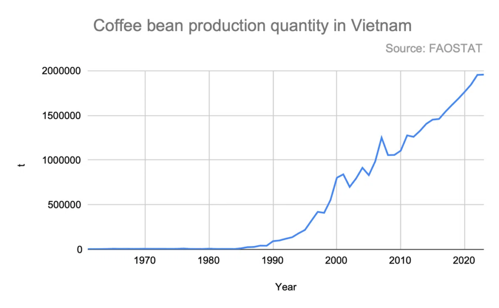 スーパーの安いコーヒー飲料や缶コーヒーの成分表示を見ると、コーヒー豆の生産国に「ベトナム」と書かれているものが多い。